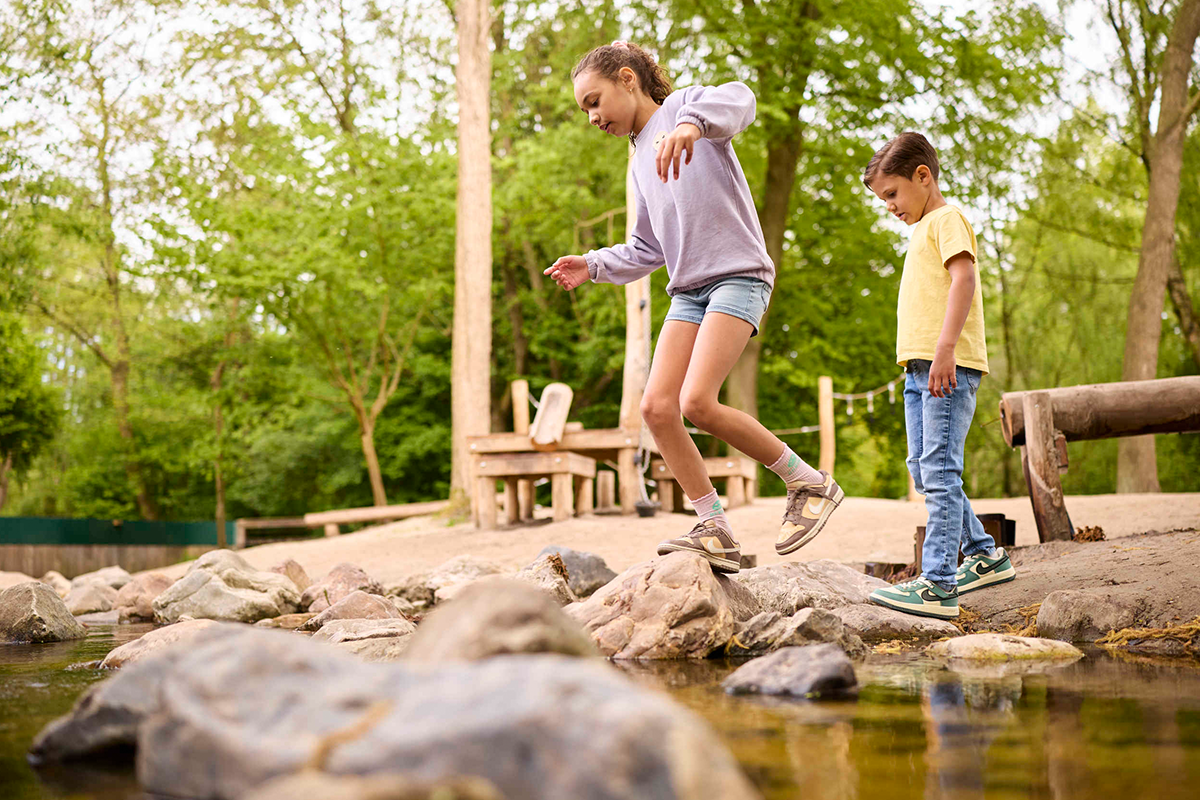 Wandelschoenen aan, backpack om en ontdekken maar! Ga samen op zoek naar bijzondere dieren in de meest waterrijke dierentuin van Nederland, zoals tijgers, ijsberen, nijlkrokodillen, ringstaartmaki's en pinguïns. In AquaZoo kom je van alles te weten over deze bijzondere dieren tijdens de verschillende leerzame presentaties die dagelijks worden gegeven. Wandel eens via de avonturenroutes langs de dieren. Loop via boomstammen over de slootjes, steek via een trekvlot het moeras bij de kangoeroes over en spring van de ene steen naar de andere. Houd jij je voeten droog? Ook is er een roeivijver en zijn er speeltuinen. Er is zelfs een gigantische air trampoline om je helemaal uit te leven. Ouders kunnen ondertussen lekker genieten op het terras met een hapje en een drankje.